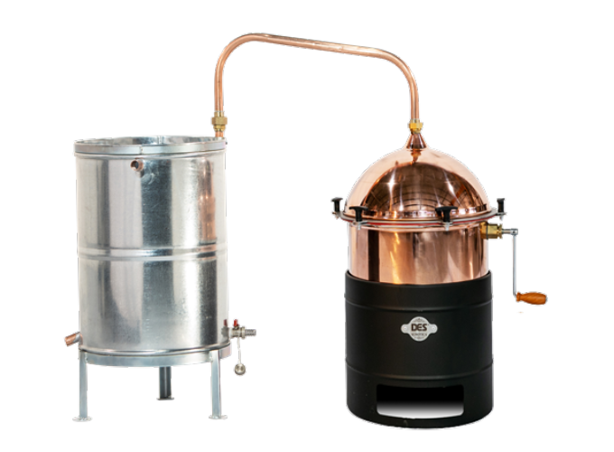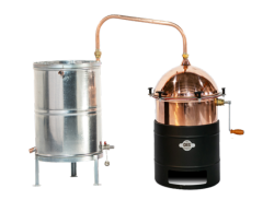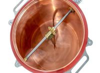 40 literes hűtővel! Jellemzők: Beépített kézi hajtású vörösréz keverő az odaégés kiküszöbölésére. A cefrével és a párlattal érintkező minden egyes elem (főzőüst, szeszpáracső, hűtőspirál) 99,99 százalékos vörösrézből készül. Fűtés: gázégővel