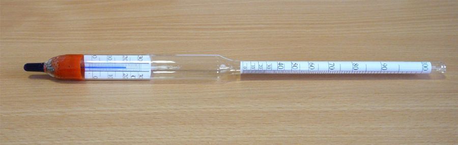 Szeszfokoló hőmérővel. Mérési Tartomány: 0-100 v/v%. Mérete: 300mmm